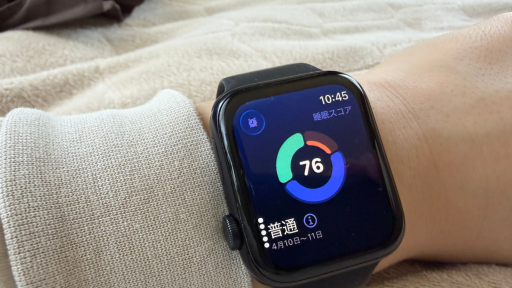 結果的に睡眠記録にも活用しています。装着したまま寝るだけで、睡眠時間・深さ・中途覚醒のタイミングが自動で記録されます。
